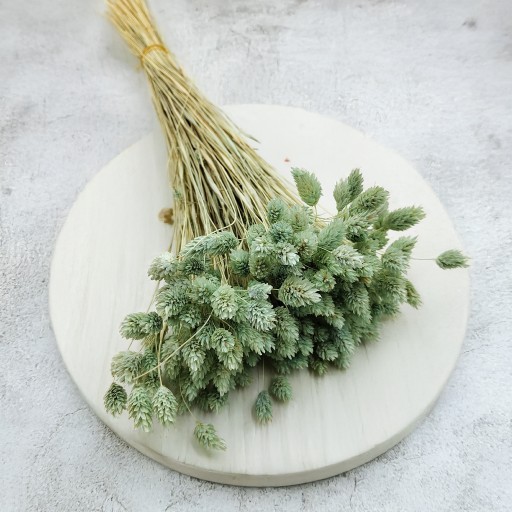 Naturalny miętowy suszony Phalaris. Inaczej zwany suszona Mozga lub Suszony Kanar Idealnie nadaje się do wiejskich, sielskich kompozycji w stylu boho. Piękny, delikatny miętowy kolor. Idealnie nada się do twoich kompozycji kwiatowych, sesji zdjęciowych i produktowych.