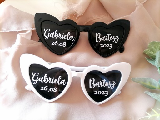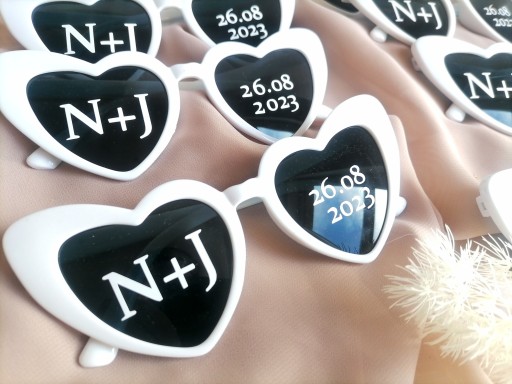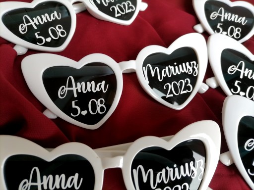 OKULARY z oprawkami w kształcie serca z personalizowanymi napisami.