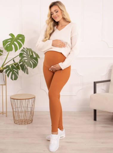 - Legginsy wykonane są z miękkiej, oddychającej bawełnianej dzianiny, co zwiększa przyjemność użytkowania. Dzięki temu, że jest ona rozciągliwa, ze spokojem możesz chodzić w nich przez całą ciąże i po urodzeniu maluszka.