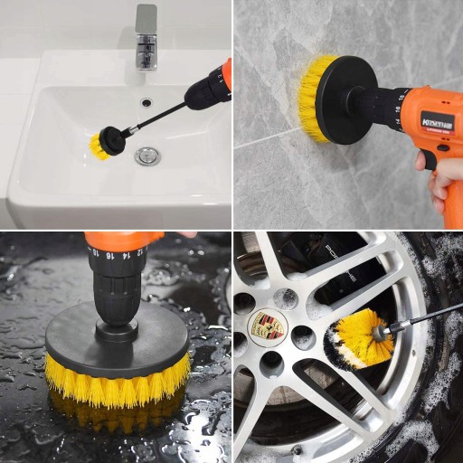 Są to szczotki, gąbki polerujące oraz włóknina do montażu na wkrętarkę i wiertarkę każdego typu. Posiadają uniwersalne trzpienie 8mm. Taki zestaw można wykorzystać w motoryzacji (np. do felg samochodowych), a także w warsztacie i wielu prac domowych, usprawniając czyszczenie praktycznie wszystkich powierzchni.