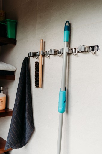 - Wodoodporny i nierdzewny – zamontowany na ścianie uchwyt mopa wykonany jest ze stali nierdzewnej SUS304 i silikonu przyjaznego dla środowiska.
