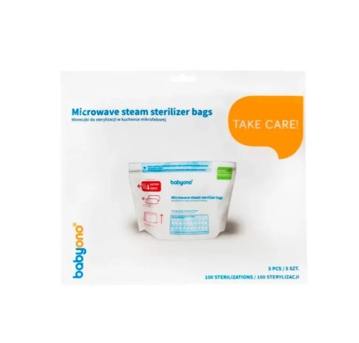 Woreczki do sterylizacji w kuchence mikrofalowej marki BabyOno to praktyczny i higieniczny produkt, który umożliwia szybkie i skuteczne sterylizowanie butelek, smoczków, kubeczków, laktatorów i innych akcesoriów niemowlęcych. Zastępują tradycyjny sterylizator, a proces sterylizacji trwa jedynie 1,5 minuty. Każdy woreczek można użyć aż 20 razy.