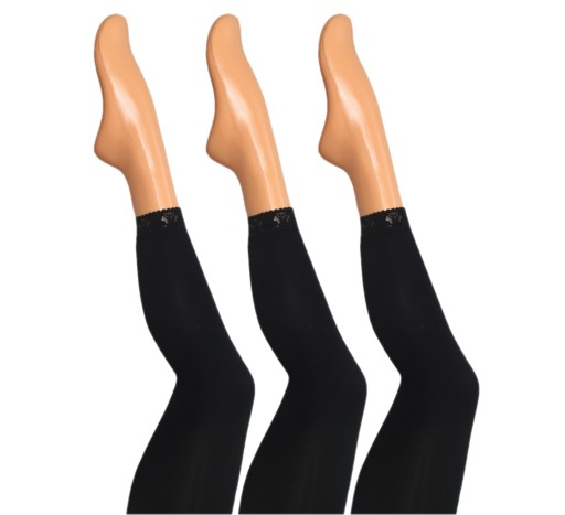 Trwałe getry wykonane z przędzy poliamid, dobrej jakości polski produkt. Wykończone ozdobną koronką. Legginsy są gładkie i przyjemne w dotyku. Pięknie prezentuje się na nogach.