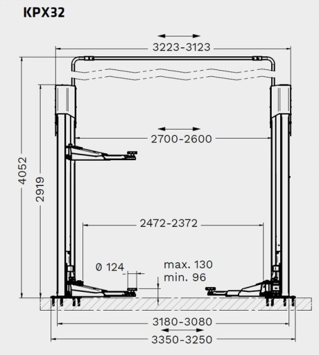 - max. szerokość podnośnika: 3250 - 3350 mm
