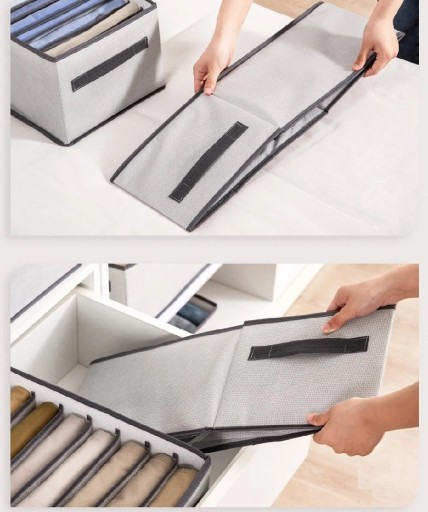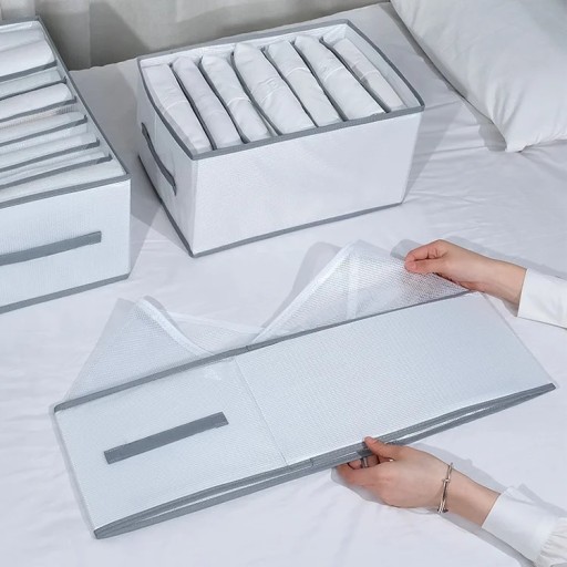 Organizer po rozłożeniu ma przegródki, w których wszystkie ubrania znajdą swoje miejsce. Dzięki temu zawsze są w zasięgu wzroku, ich znalezienie nie stanowi problemu, a wyciągnięcie potrzebnego przedmiotu nie powoduje bałaganu w całej szufladzie.