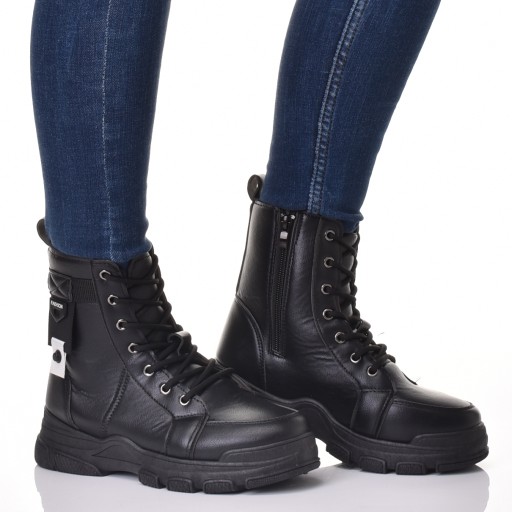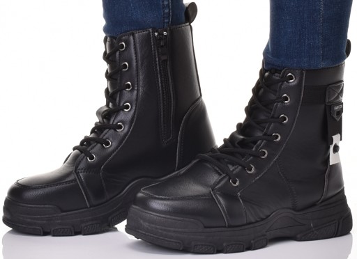 MODNE SKÓRZANE BOTKI Z KLASYCZNYM SZNUROWANIEM ORAZ ZAMKIEM