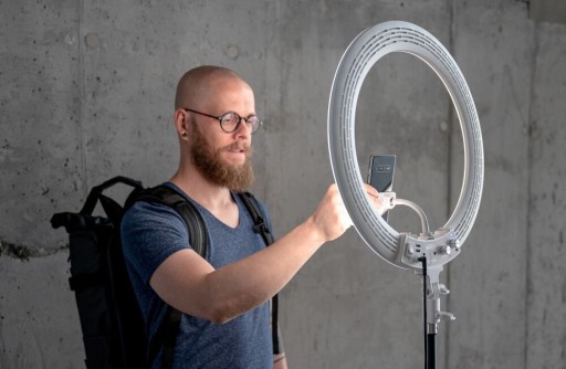 Filmy na Youtube, sesje zdjęciowe, fotografie produktowe - każde z nich potrzebuje dobrego oświetlenia. A co Ci je zapewni? Lampa pierścieniowa LED Newell RL-18A. Dzięki pierścieniowej konstrukcji oferuje ona równomierną dystrybucję światła.