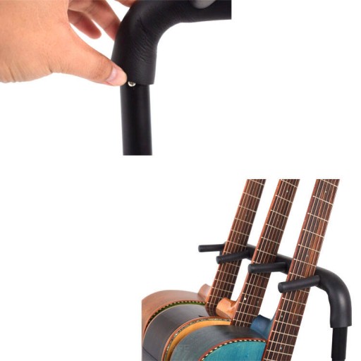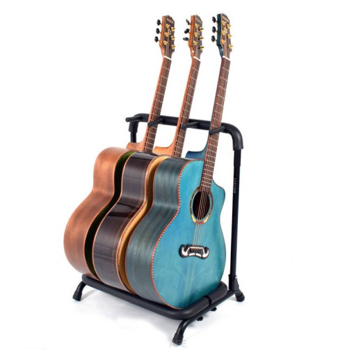 Solidny, metalowy stojak do 3 gitar. Idealnie nada się zarówno do domu, na scenę jak i do sklepu do ekspozycji gitar.