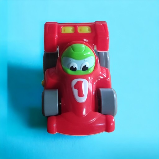 - Naciśnięcie głowy kierowcy powoduje wyzwalanie efektów dźwiękowych prawdziwego samochodu wyścigowego, a światła naprawdę migają, powodując rozrywkę dziecku