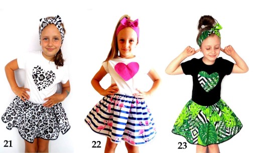 1) Bawełnianej rozkloszowanej spódniczki w modnych 30- tu oryginalnych wzorach - wykończonej satynową białą lub czarną lamówką. Spódniczka osadzona na gumce. Spódniczka nie traci kształtu dzięki czemu efektownie się układa.