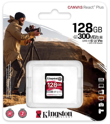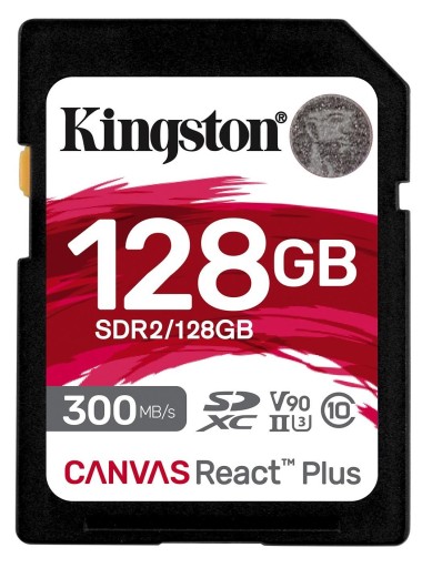 - Nazwa produktu: Kingston SDXC Canvas React Plus 128GB 300R/260W UHS-II U3