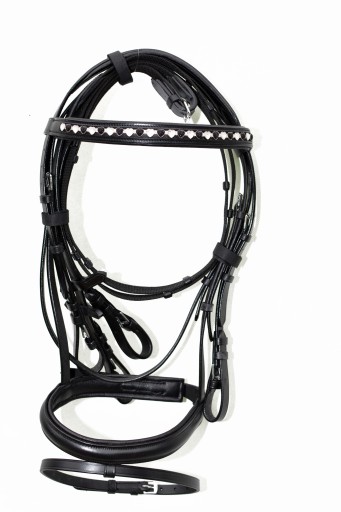 Ogłowie +Wodze Anatomiczne profilowane roz. COB.Ogłowie wyprodukowane w zakładzie Rymarskim w Anglii .Wykonane z najwyższej jakości skóry bydlęcej bardzo miękkiej i miłej w dotyku , część potyliczna i naczółek poszyty miękko skórą ,aby zapobiec obtarciom .Ogłowie zapinane i regulowane jest na stabilne sprzączki , wykonane z bardzo dobrej nierdzewnej stali szlachetnej . Zapraszam do zakupu.