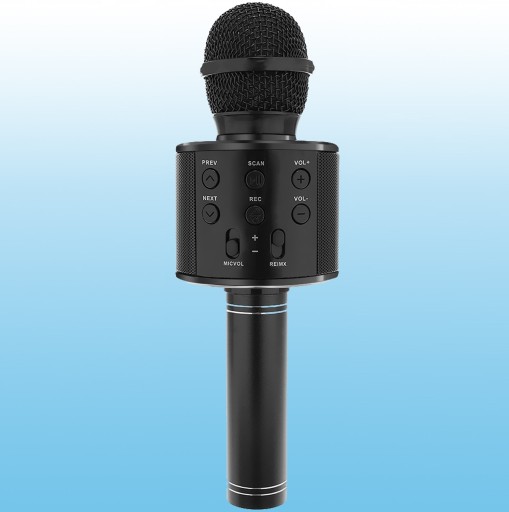 Mikrofon z dwoma głośnikami, umożliwia odsłuchiwanie oraz nagrywanie piosenek. Łączy się z urządzeniami zewnętrznymi (tj. telefon, tablet, telewizor SMART z systemem operacyjnym ANDROID lub IOS) poprzez Bluetooth 4.0 lub znajdujący się w zestawie kabel.