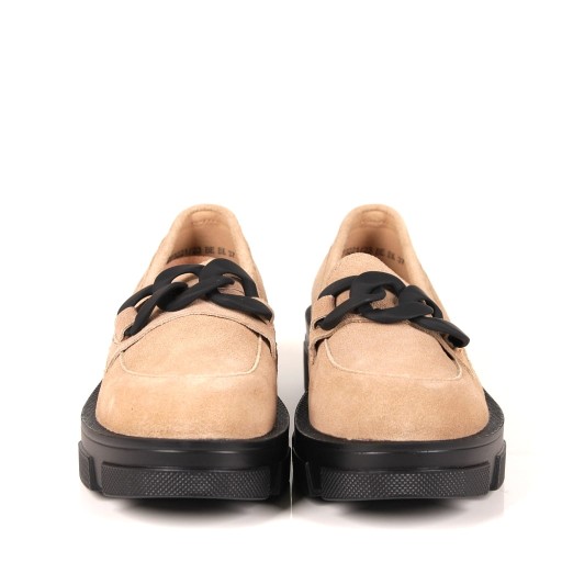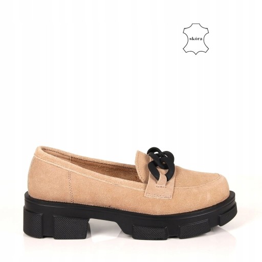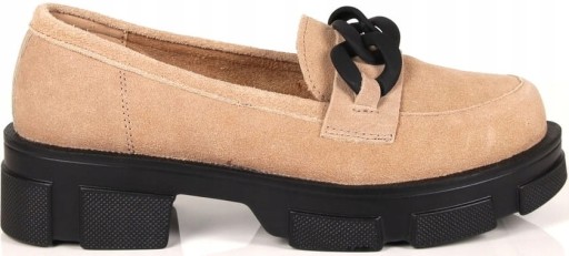 DAMSKIE MOKASYNY PÓŁBUTY ZE SKÓRY NA GRUBEJ PODESZWIE BEŻOWE ZAMSZOWE