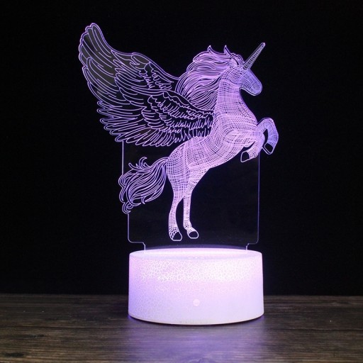 Nasza lampka 3D posiada nietuzinkowy kształt w postaci magicznego jednorożca wznoszącego się do lotu, a dodatkowym atutem jest niesamowite podświetlenie LED aż 13 barw. To idealny pomysł na prezent dla Twoich najbliższych, a nawet dla Ciebie jako słodki gadżet, czy oryginalne wyposażenie wnętrza!