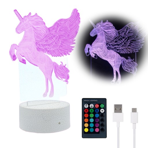 LAMPKA NOCNA 3D STOJĄCA JEDNOROŻEC LED RGB Z PILOTEM