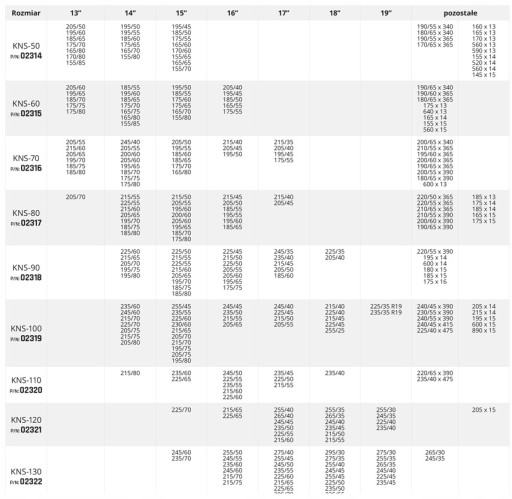 Rozmiar KN-50 pasuje m.in na opony w rozmiarze: