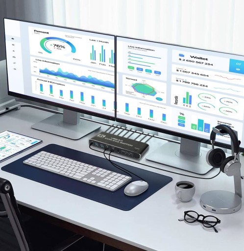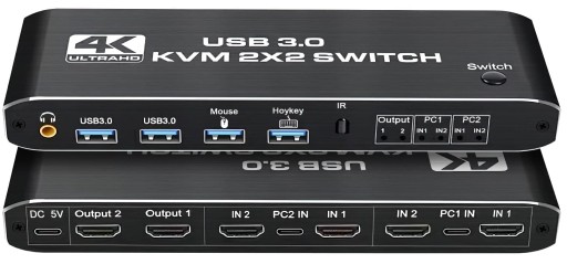 KONSOLA KVM HDMI 2.0 Przełącznik Switch 2 monitory