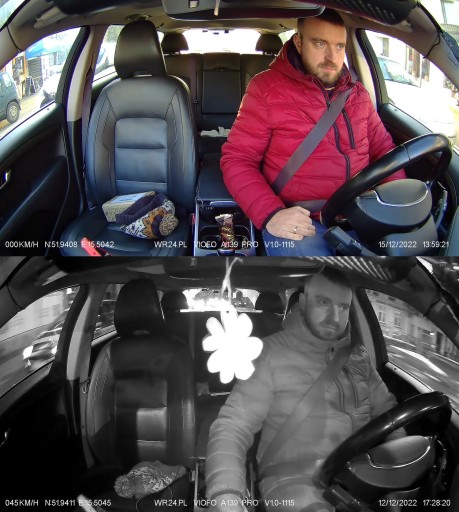 Kamera wewnętrzna posiada doświetlenie za pomocą diod IR, dzięki czemu może nagrywać obraz nawet w całkowitych ciemnościach! Dzięki bardzo szerokiemu kątowi widzenia, sięgającemu 170° zarejestrujesz to, co w środku pojazdu oraz częściowo po jego bokach, w rozdzielczości 1920x1080p.