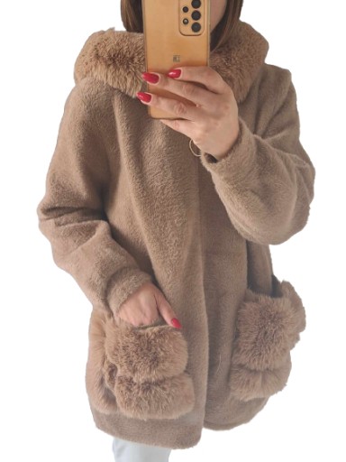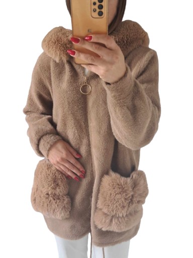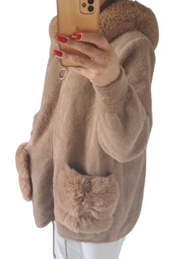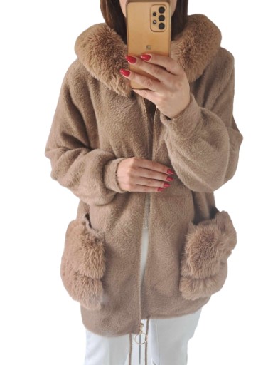 Kurtka z Alpaki ( kaptur i kieszenie z futerkiem) - Kamel
