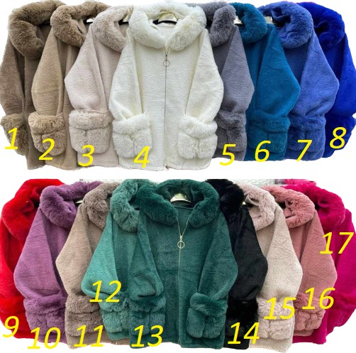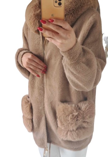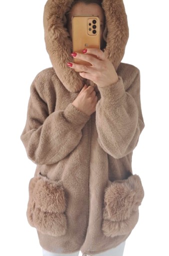 Kurtka wykonana z bardzo modnego i niezwykle przyjemnego materiału. Ciepła, idealna na wiosnę/jesień. Oversizeowy, luźny krój pasujący do eleganckiej, casualowej jak i sportowej stylizacji. Zapinana na suwak, rękawy zakończone szerokimi ściągaczami. Posiada kaptur zakończony futerkiem, które można odpiąć. Po bokach dwie głębokie kieszenie również wykończone futerkiem. Kurteczka dostępna jest szerokiej gamie kolorów.