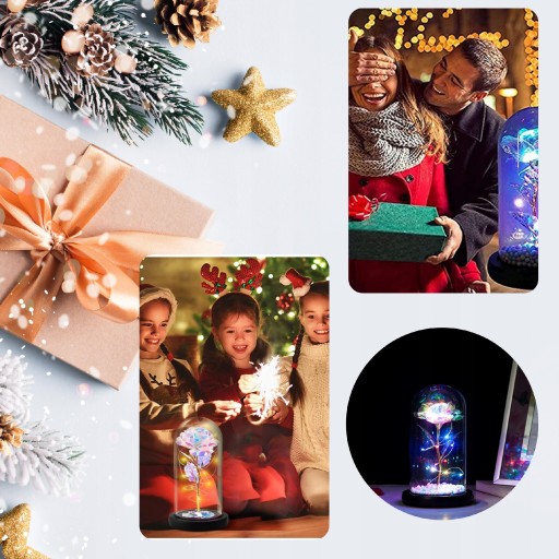 ✅ WIECZNA RÓŻA W SZKLE ŚWIECĄCA LED + OZDOBNE PUDEŁKO NA PREZENT WIECZNA ROZA W SZKLE LED NA LODYDZE PREZENT DLA DZIEWCZYNY