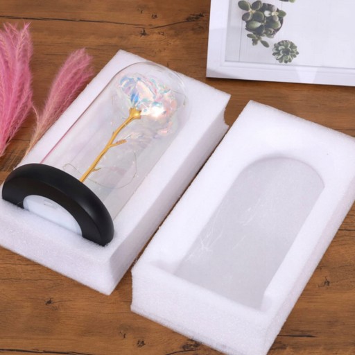 Chcesz podarować kwiaty, ale boisz się, że zbyt szybko zwiędną? Wieczna róża w szkle rozwiąże Twój problem. To idealny pomysł na upominek dla Twoje dziewczyny, żony, mamy lub innej bliskiej Ci kobiety. Pod szklanym kloszem zamknięta jest róża. Całość oświetla panel LED. Ozdoba prezentuje się bardzo elegancko. Jest trwała i pasuje do wnętrz urządzonych w różnym stylu.