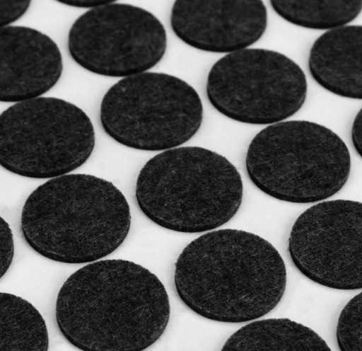 Podkładki nie wymagają użycia narzędzi, gdyż zostały wyposażone od spodu w mocny klej. Wystarczy odkleić je od tarczy i umieścić w odpowiednim miejscu pod meblem. Podkładki wykonane zostały z bardzo wytrzymałego filcu oraz pianki. W zestawie 125 sztuk w różnych rozmiarach.