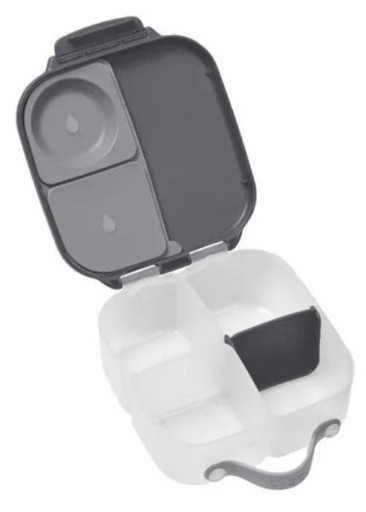 Mini lunchbox b.box dla dzieci ma dwie szczelne przegródki w tym jedną flex przeznaczoną na całe owoce. W przegrody te można włożyć także takie przekąski jak jogurt, humus, gęsty przecier, dip, soczyste owoce i warzywa. Obok znajduje się przegroda bez uszczelki z przesuwanym i wyjmowanym elementem dzielącym ułatwiającym dopasowanie do potrzeb. Lunchbox b.box ma kształt poręcznej walizeczki w wygodnym uchwytem i prostym w obsłudze zatrzaskiem.