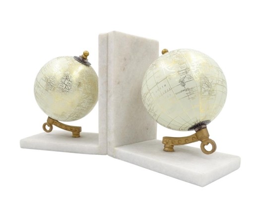 Żeby książki podróżnicze i albumy ze zdjęciami trzymały pion, postaw na podpórki do książek. Globusy w tym bookendzie nadają mu globtroterskiego charakteru. Delikatne, jasne barwy podpórek książek świetnie wkomponują się w nowoczesne pomieszczenia i urokliwy kącik do czytania. Baza podpórki wykonana jest z marmuru, co nadaje im elegancji i estetycznego looku.