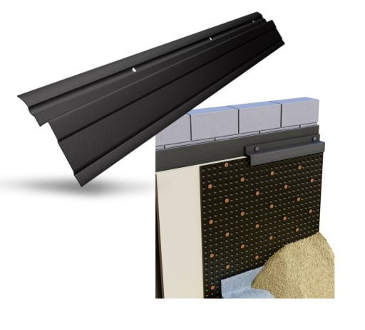 Listwa jest niezbędna do profesjonalnego połączenia kubełkowej folii HDPE z elewacją. Stanowi ona element składowy systemu hydroizolacji budynku.