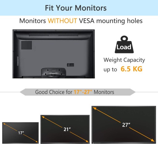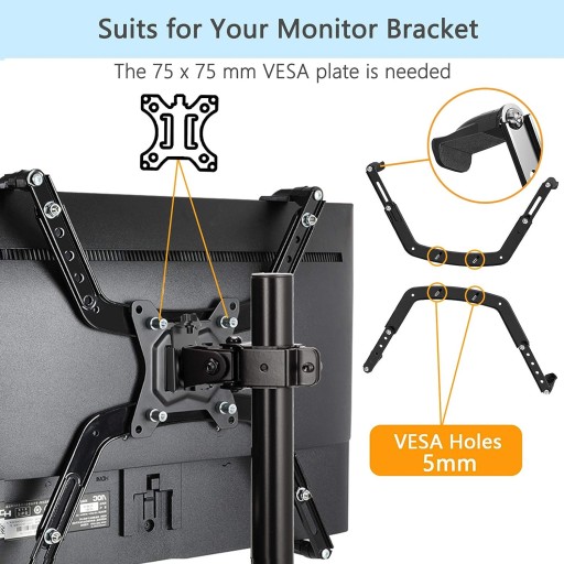 - Jakość wykonania - Wykonane z walcowanej na zimno stali, która może trzymać wyświetlacze bezpiecznie. Miękka wyściółka w tylnej części paska montażowego adaptera VESA i trwałe plastikowe uchwyty, chroniące tył i krawędzie monitora przed zadrapaniami. UWAGA: minimum 5 mm średnicy otworów VESA w istniejącym wsporniku lub uchwycie ekranu jest wymagane, aby to pasowało.