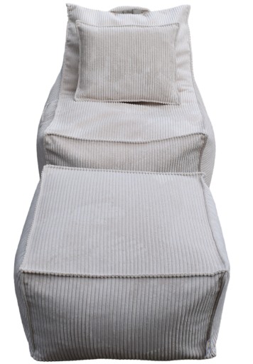 W środku znajduje się granulowany styropian. Wszystko obszywamy podwójnymi mocnymi szwami. Dzięki takiemu szyciu mamy pewność, że pufa będzie długo służyła i nie będzie się wysypywał wkład .Swoje walory estetyczne oraz wytrzymałą konstrukcję zawdzięcza przemyślanemu projektowi i wykorzystaniu materiałów wysokiej jakości.