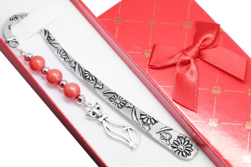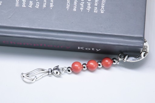 Elegancka zakładka do książki z zawieszką z motywem kota z dodatkiem akrylowych koralików.