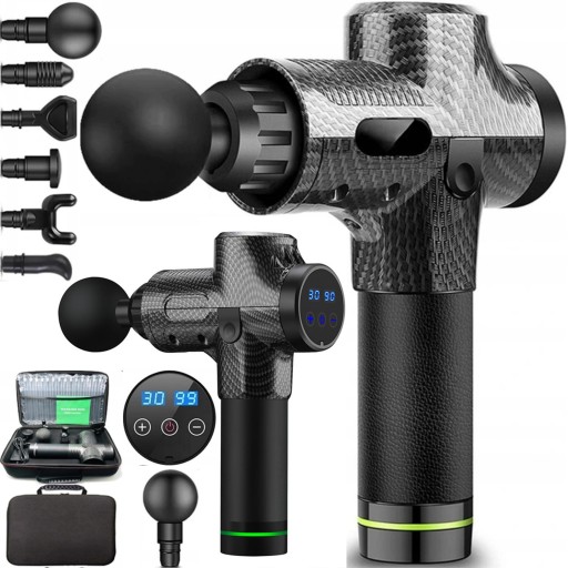 ➡️ Masażer pistolet masujący CARBON GUN PRO + Końcówki
