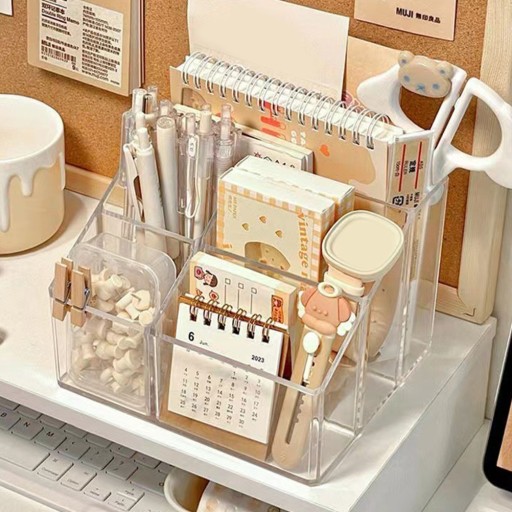 Uchwyt do przechowywania drobiazgów w gospodarstwie domowym ma płaskie dno, dzięki czemu może stabilnie stać na stole.