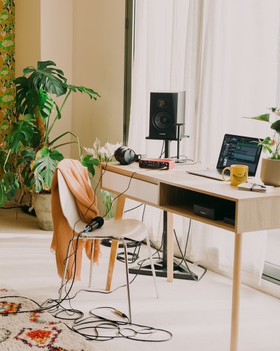 Aby od razu uzyskać najlepszy dźwięk, Scarlett 2i2 Studio zawiera studyjny mikrofon pojemnościowy CM25 MkIII i zamknięte słuchawki SH-450. CM25 MkIII można używać do niemal wszystkiego, ale pokochasz jego brzmienie na wokalu i gitarze dzięki jego jasnemu i szczegółowemu charakterowi. Przy SH-450 Focusrite stworzył swoje najdokładniejsze słuchawki studyjne, z pluszowymi poduszkami i miękkim w dotyku pałąkiem, abyś mógł być skupiony, a nie zmęczony. Jeśli nie masz jeszcze statywu mikrofonowego, Focusrite dołączył nawet dość sprytny kartonowy statyw, dzięki czemu możesz zacząć od razu.