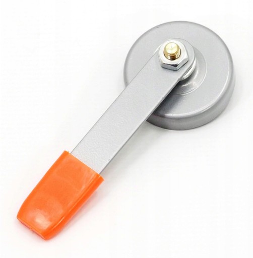 Przyłóż od strony magnesu do spawanego materiału i złap klemą masową od spawarki za wystającą śrubą zacisku.