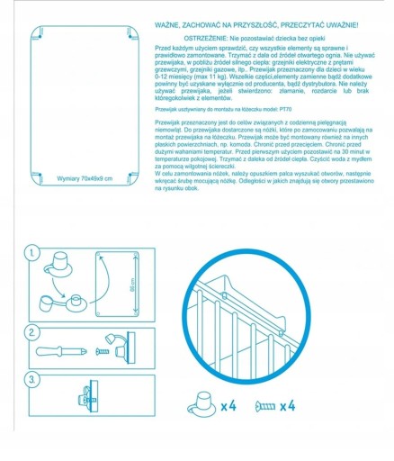 - W zestawie blokady, uniemożliwiające zsunięcie się przewijaka z łóżeczka (do samodzielnego montażu)