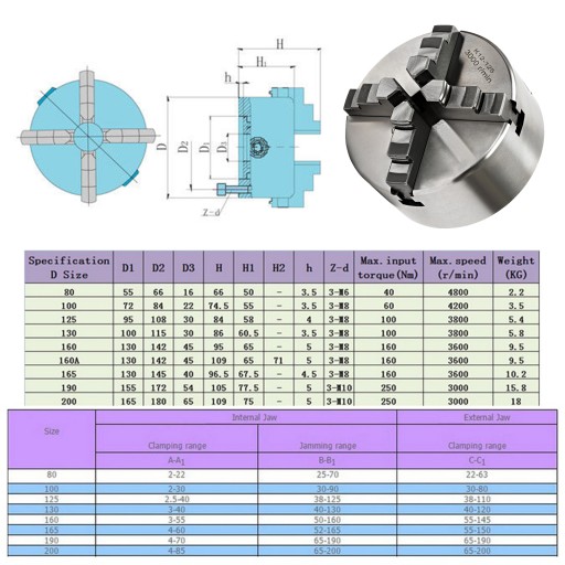 Czteroszczękowy uchwyt samocentrujący 125 mm