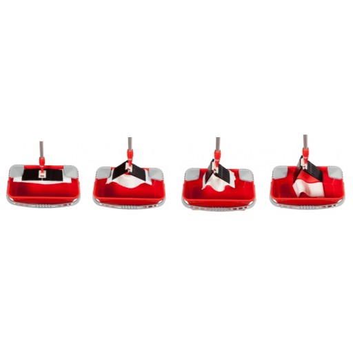 Posiada nakładki na kuwetę jako opatentowany bezdotykowy sposób zdejmowania i zakładania mopa "Touch Free System"