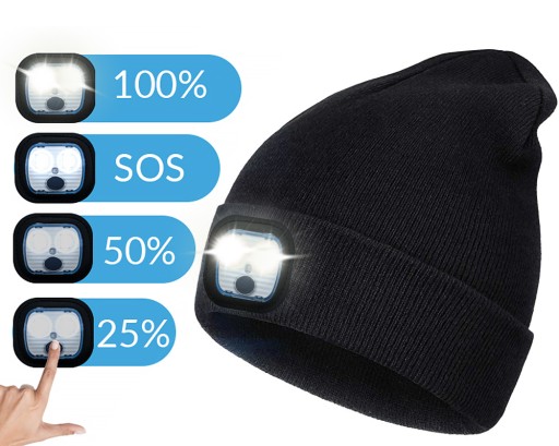 🧑 Czapka Beanie z latarką LED świecąca aż w trzech trybach marki WEBSKI®