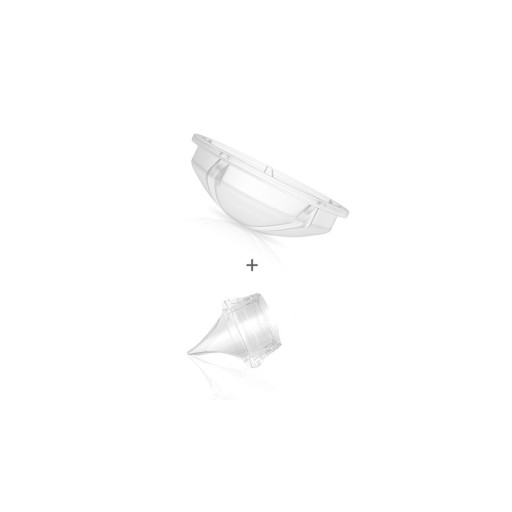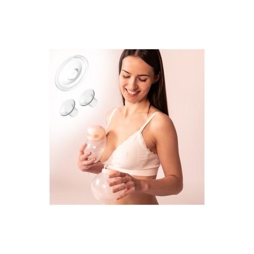 Dzięki temu dopasujesz rozmiar lejka do swojej brodawki. Części te są wykonane z miękkiego silikonu, więc nie podrażnią Twojej skóry.