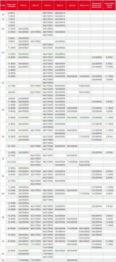 - 16.9-28 stosowana jest w koparko-ładowarkach: JCB, Volvo, Case, Terex, Cat, New Holland