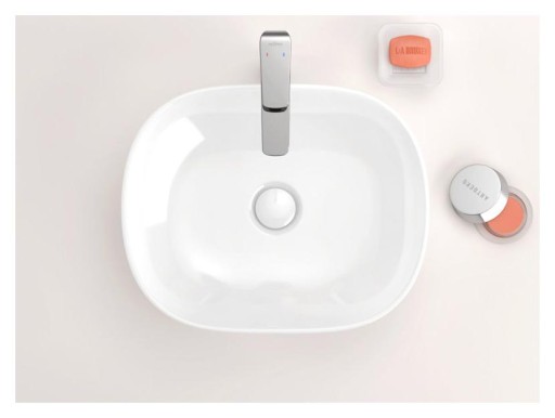 Pokrywa korka jest wykonana z ceramiki w kolorze biały połysk. Sprawdziliśmy - wybarwienie pasuje do większości dostępnych u nas umywalek ceramicznych. Świetnie wygląda zamontowany na przykład w umywalkach marek Catalano, Villeroy & Boch, Vitra.