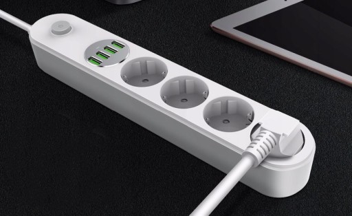 Perfekcyjna listwa zasilająca / przedłużacz 2500W na 4 gniazda + 4x USB do max 3.4A