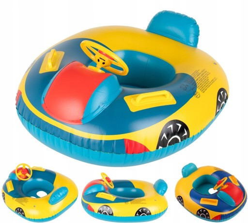 Pontonik dla dzieci w kształcie samochodu wykonany z wysokiej jakości tworzywa PCV, gwarantującego wytrzymałość.