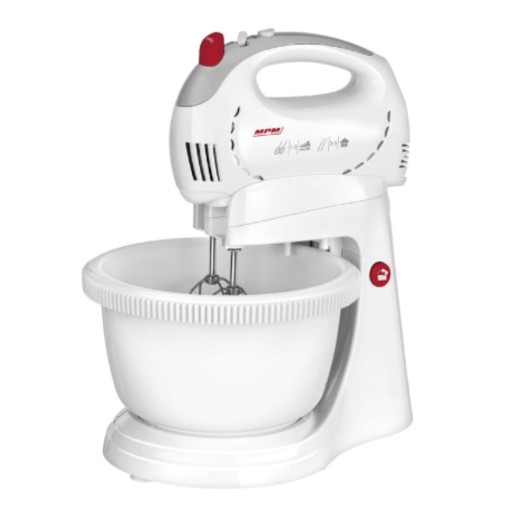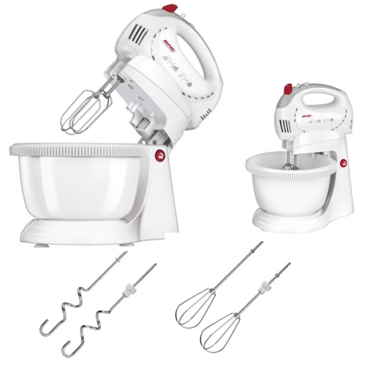W zestawie z mikserem MMR-17Z znajdziesz stojak z misą obrotową z wysokiej jakości tworzywa o pojemności 2,4 litra. Tak pracujący sprzęt dokładnie wymiesza składniki i zwolni Cię z konieczności trzymania miksera w ręku.