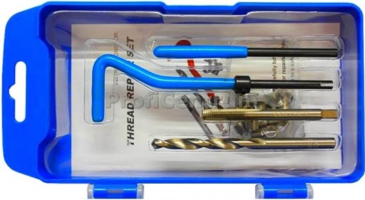 Zestaw naprawczy do zniszczonych gwintów .Elementy wykonane ze stali szybkotnącej HSS.