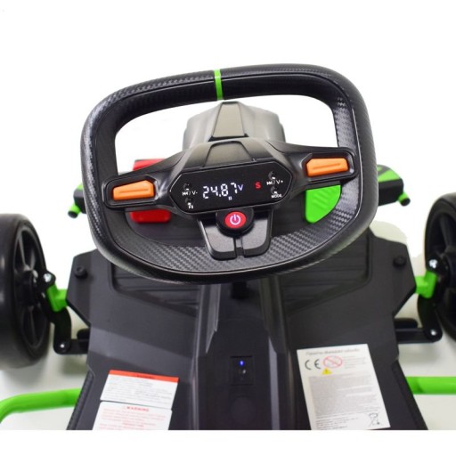 Gokart osiąga prędkość do ok.: 13 km/h, możemy nim jeździć zarówno bez funkcji DRIFTU jak i DRIFTOWAĆ.Gokart posiada elektryczny hamulec, dzięki czemu jest w stanie zatrzymać się bez problemu.